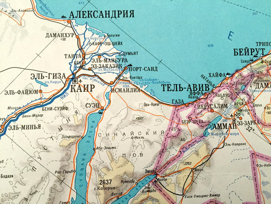 Antique SOVIET Mediterranean Sea 1980 Russian Army *Wall Size* Survey Map – Europe Africa Middle East Italy Holy Land France Germany Turkey