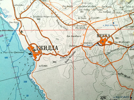 Antique SOVIET Saudi Arabia, Sudan & The Red Sea 1989 Russian Army *WALL SIZE* Survey Map – Egypt, Jeddah, Mecca, Medina, Port, Middle East