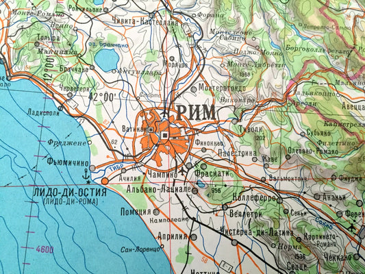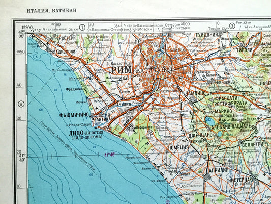 Antique SOVIET Rome, Italy 1972 Russian Army Survey Map – Naples, Palermo, Sorrento, Amalfi Coast, Pompei, Lazio, Campania, Latina, Anzio