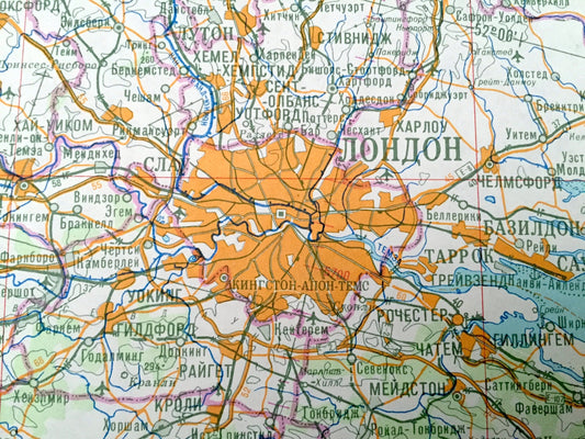 Antique SOVIET English Channel 1973 Russian Army Survey Map – England, France, London, Paris, Calais, Dunkirk, Rouen, Belgium, UK EU
