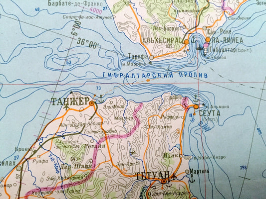 Antique SOVIET Spain, Portugal & Morocco 1973 Russian Army *WALL SIZE* Survey Map – Madrid, Gibraltar, Tangier Granada Malaga Algeria France