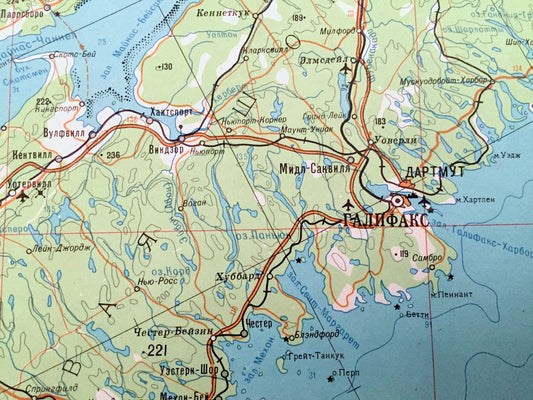 Antique SOVIET Maritimes, Canada 1984 Russian Army *WALL SIZE* Survey Map – Nova Scotia, New Brunswick, Prince Edward Island, Cape Breton ca