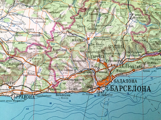 Antique SOVIET France, Spain, Italy & North Africa 1972 Russian Army Survey Map – Sardinia, Corsica, Barcelona, Monaco, Azure Coast, Ibiza