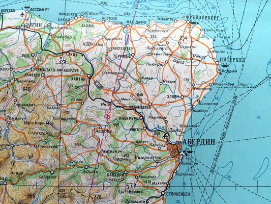 Antique SOVIET Aberdeen, Scotland 1986 Russian Army Survey Map – Dundee, Inverness, St Andrews, Orkney Islands, Hebrides, Great Britain, UK