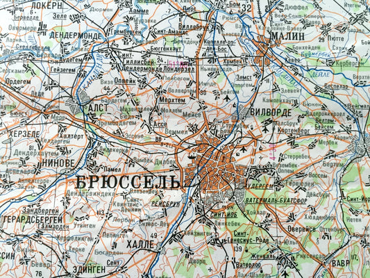 Antique SOVIET Brussels, Belgium 1968 Russian Army Survey Map – Ghent, Bruges, Antwerp, Rotterdam, Breda, Ostend, Netherlands, Lille, France
