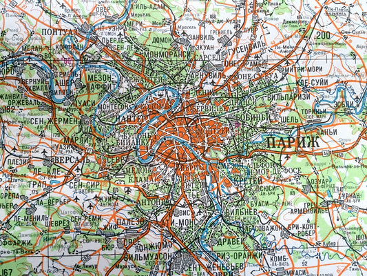 Antique SOVIET Paris, France 1965 Russian Army Survey Map – Rouen, Le Havre, Versailles, Chartres, Le Mans, Reims, Tours, Dijon, Normandy