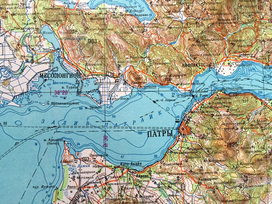 Antique SOVIET Patras, Greece 1983 Russia Army Survey Map – Athens, Peloponnese, Thessaly, Epirus, Larissa, Kalamata Region, Volos, Lamia