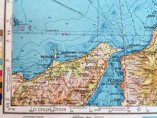 Antique SOVIET Sicily & Calabria, Italy 1967 Russian Army Survey Map – Messina, Catanzaro, Cosenza, Crotone, Tropea, Reggio, Mediterranean
