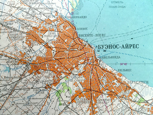 Antique SOVIET Buenos Aires, Argentina 1970 Russia Army Survey Map – La Plata, Pilar, Entres Rios, Santa Fe Province, Zarate, Uruguay