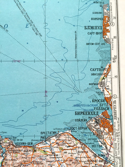 Antique SOVIET Wales & England 1958 Russian Army Survey Map – Birkenhead, Liverpool, Wrexham, Snowdonia National Park, Anglesey, Gwynedd
