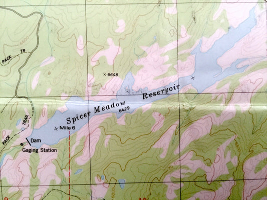Antique Spicer Meadow Reservoir, California 1979 US Geological Survey Topographic Map – Tuolumne Co, Lake Alpine, Henry Peak, Bull Run Peak