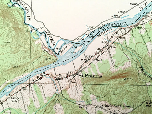 Antique St Francis, Maine 1930 US Geological Survey Topographic Map – Aroostook County, St. John River, Bradbury, New Brunswick, Canada, ME