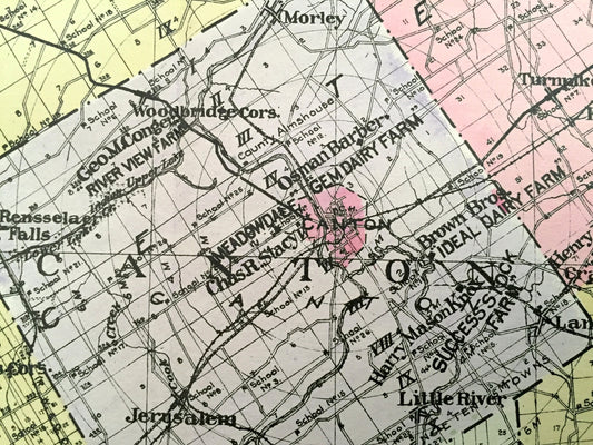 Antique St. Lawrence County, New York 1912 New Century Atlas Map – Canton, Potsdam, Ogdensburg, Morristown, Massena Cranberry Lake Madrid NY