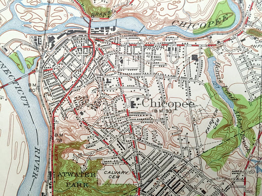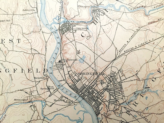 Antique Springfield, Massachusetts 1895 US Geological Survey Topographic Map – Holyoke, South Hadley, Chicopee, Southhampton, Agawam, MA