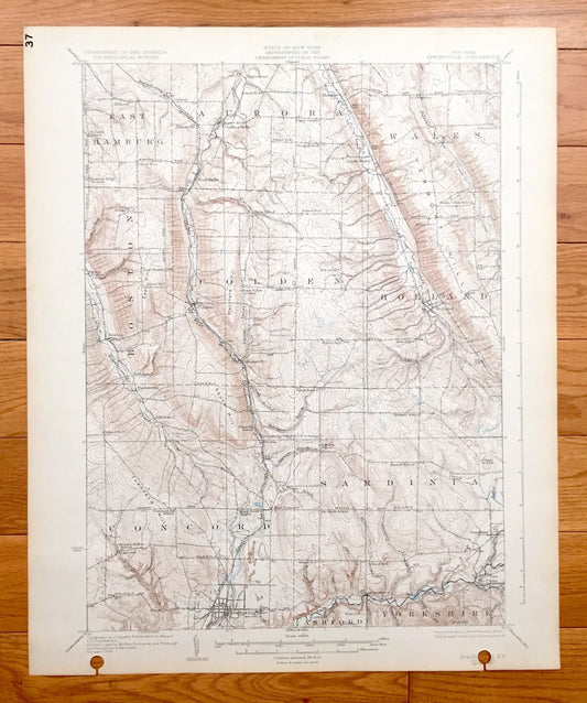 Antique Springville, New York 1925 US Geological Survey Topographic Map - Concord, Sardinia, Ashford, Yorkshire, Boston, Colden, Holland