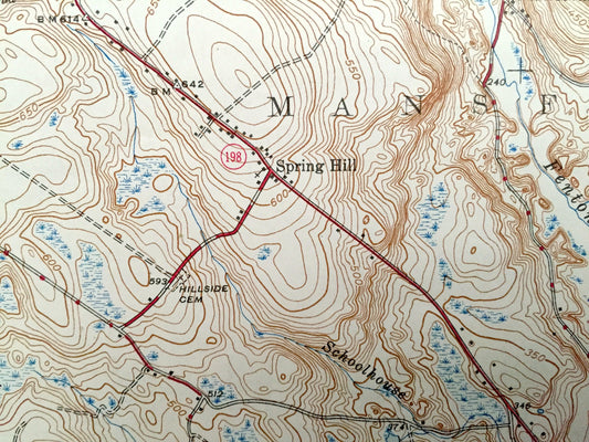 Antique Spring Hill, Connecticut 1945 US Geological Survey Topographic Map – Willington, Ashford, Storrs, Mansfield, Chaplin, University, Ct