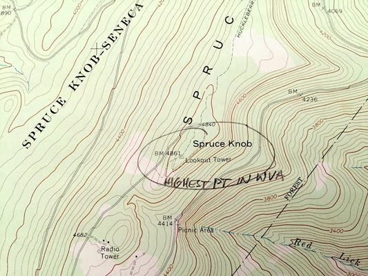 Antique Spruce Knob, West Virginia 1970 US Geological Survey Topographic Map - Pendleton County, Circleville, Union, Dry Fork, Greenbank WV