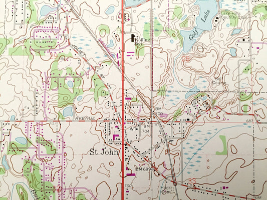 Antique St. John, Indiana 1962 US Geological Survey Topographic Map – Ross, Hanover, Center, Cedar Lake, Schererville, Cook, Lake County