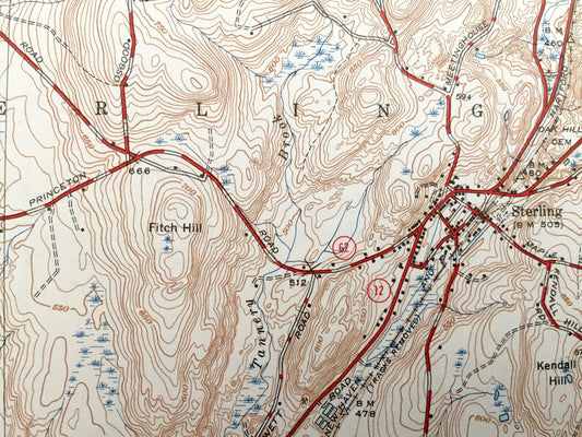 Antique Sterling, Massachusetts 1946 US Geological Survey Topographic Map – Worcester County, Princeton, Leominster, West Boylston Holden MA