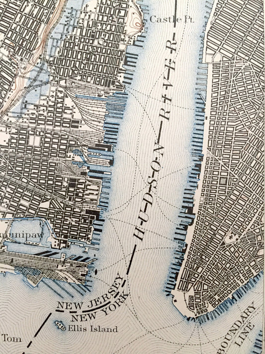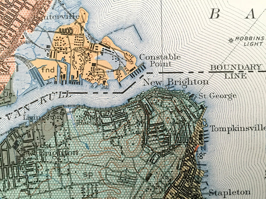 Antique Staten Island, New York City 1901 US Geological Survey Topographic Map – Manhattan, Brooklyn, Newark, Bayonne, Elizabeth, New Jersey
