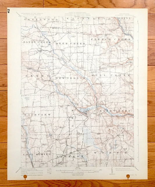Antique Stoneboro, Pennsylvania 1913 US Geological Survey Topographic Map - Cool Spring, Jackson, Worth, Fairview, Perry, New Vernon, Wayne