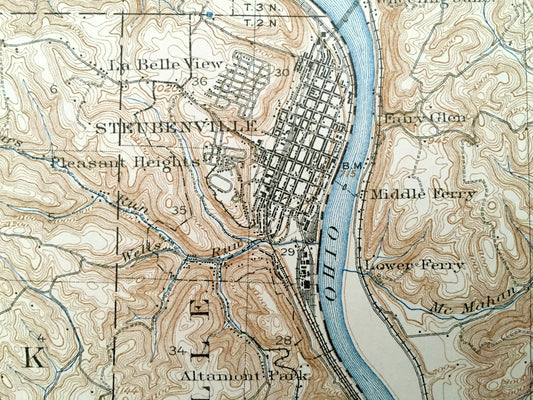 Antique Steubenville, Ohio 1904 US Geological Survey Topographic Map – Knox, Island Creek, Wells, La Belle View, Toronto, Panhandle, OH WV
