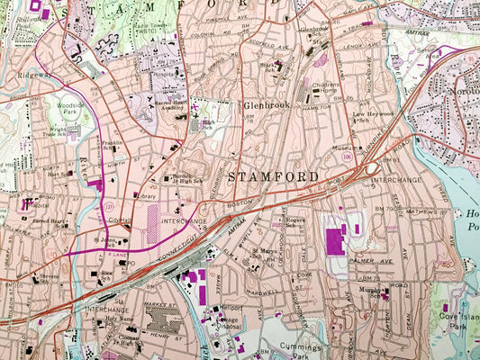 Antique Stamford, Connecticut 1960 US Geological Survey Topographic Map – Fairfield County, Greenwich, New Canaan, Riverbank, Darien, CT
