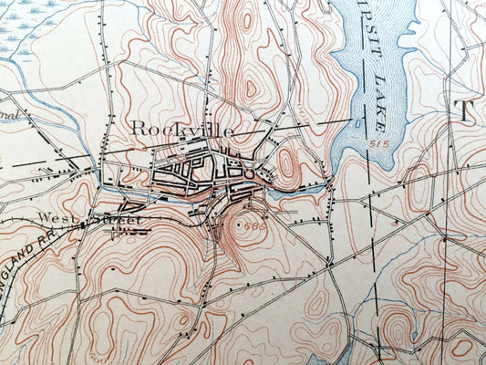 Antique Tolland, Connecticut 1892 US Geological Survey Topographic Map – Rockville, Coventry, Ellington, Somers, Stafford Springs, County CT