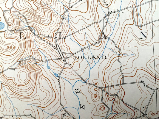 Antique Tolland, Connecticut 1892 US Geological Survey Topographic Map – Rockville, Coventry, Ellington, Somers, Stafford Springs, CT, Conn