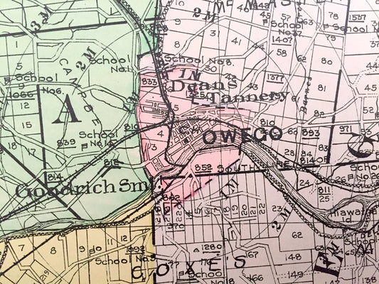 Antique Tioga County, New York 1911 New Century Atlas Map – Owego, Spencer, Nichols, Waverly, Candor, Newark Valley, Catatonk, Barton