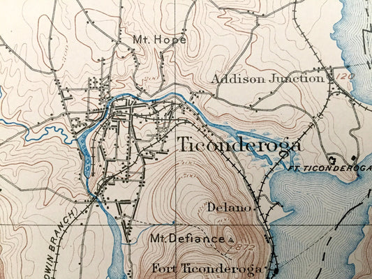 Antique Ticonderoga, New York 1896 US Geological Survey Topographic Map – Lake Champlain, George, Crown Point, Putnam, Orwell, Vermont NY VT