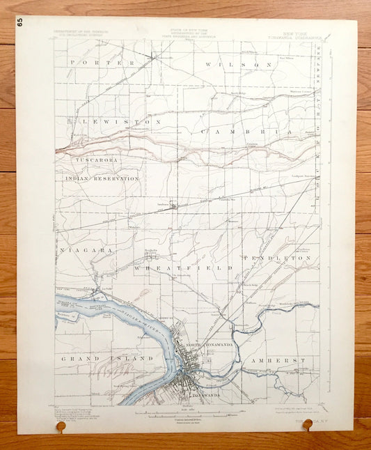 Antique Tonawanda, New York 1901 US Geological Survey Topographic Map - Amherst, Grand Island, Wheatfield, Pendleton, Lewiston, Cambria, NY