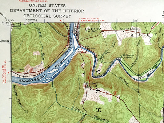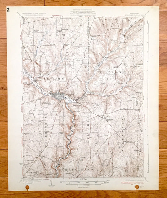 Antique Titusville, Pennsylvania 1933 US Geological Survey Topographic Map - Rome, Eldred, Southwest, Cherry Tree, Oakland, Cornplanter, PA