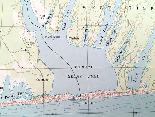 Antique Tisbury Great Pond, Massachusetts 1972 US Geological Survey Topographic Map – Chilmark, West, Edgartown, Martha's Vineyard, Dukes MA