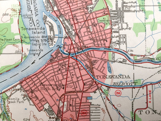 Antique Tonawanda, New York 1948 US Geological Survey Topographic Map – Amherst, Grand Island, Wheatfield, Pendleton, Lewiston, Cambria, NY