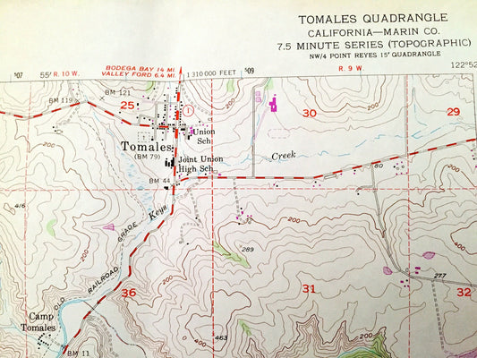 Antique Tomales Bay, California 1954 US Geological Survey Topographic Map – Marin County, Inverness Ridge, Point Reyes National Seashore CA