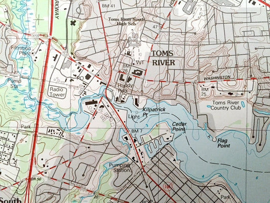 Antique Toms River, New Jersey 1989 US Geological Survey Topographic Map – Ocean County, Dover, Berkeley, Manchester, Lacey, Shore, Beach NJ