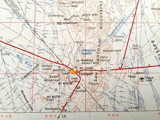 Antique Tonopah, Nevada 1962 US Geological Survey Topographic Map – Mineral, Esmeralda, Nye County, Toiyabe National Forest Desert Valley NV