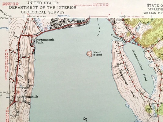 Antique Tiverton, Rhode Island 1949 US Geological Survey Topographic Map – Newport County, Westport, Adamsville, Portsmouth, Middletown, RI