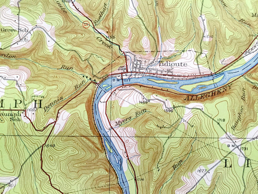 Antique Tionesta, Pennsylvania 1922 US Geological Survey Topographic Map – Forest, Venango, Clarion County, Farmington, Allegheny, Knox, Elk