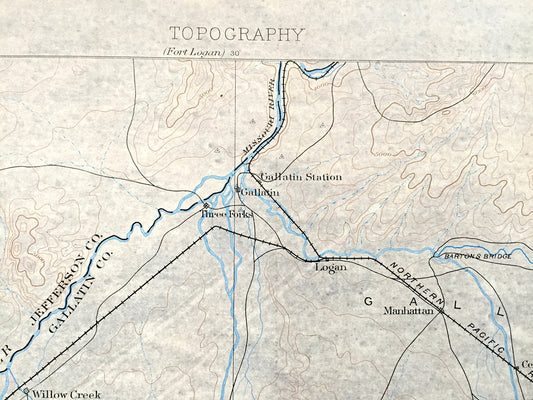 Antique Three Forks, Montana 1886 US Geological Survey Topographic Map – Bozeman, Yellowstone National Park, Jefferson, Sappington MT