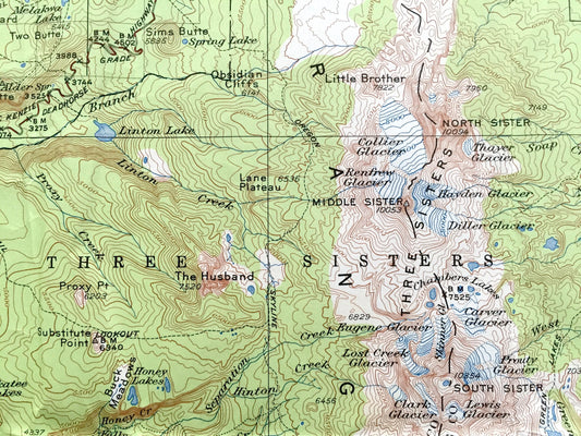 Antique Three Sisters, Oregon 1929 US Geological Survey Topographic Map – Linn, Lane, Jefferson County, Willamette, Deschutes Forest, OR