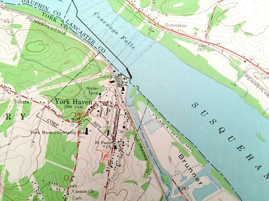 Antique York Haven, Pennsylvania 1964 US Geological Survey Topographic Map – Newberry, Conewago, East Manchester, Springettsbury, Hellam