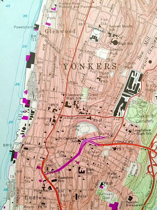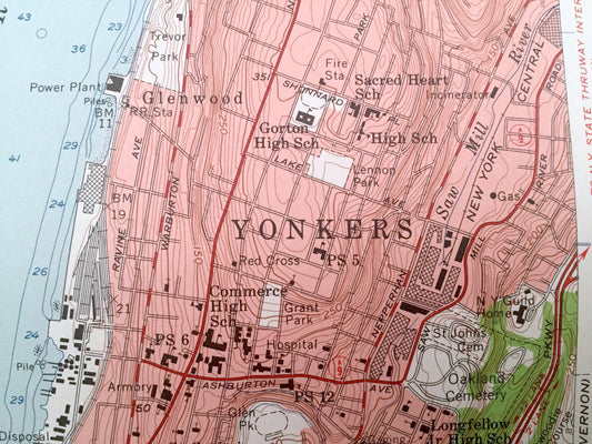 Antique Yonkers, New York 1956 US Geological Survey Topographic Map – Westchester, Bronx County, Bergen County, Bronx, Upstate, New Jersey