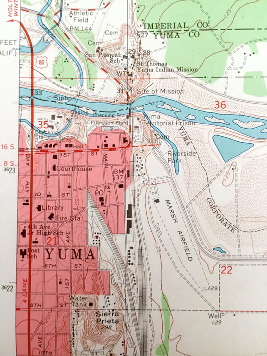 Antique Yuma, Arizona & CA 1965 US Geological Survey Topographic Map – County, Araby, Gila Center, Fort Yuma Indian Reservation, River, AZ