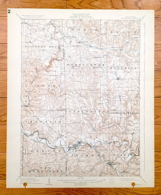 Antique Zelienople, Pennsylvania 1910 US Geological Survey Topographic Map - Jackson, Forward, Marion, New Sewickley, Daugherty, Franklin PA