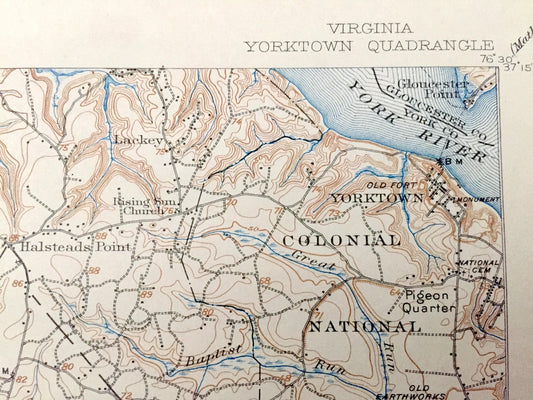 Antique Yorktown, Virginia 1907 US Geological Survey Topographic Map – Isle of Wight, Warwick, James City, York, Surry County, Jamestown, VA