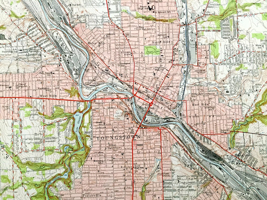 Antique Youngstown, Ohio 1954 WALL SIZE US Geological Survey Topographic Map – Mahoning County, Trumbull, Downtown North Heights Hazelton oh