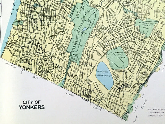 Antique Yonkers, Rensselaer & Mechanicville, New York 1941 Historical Atlas City Street Map – Hudson River Valley, Westchester County, NY