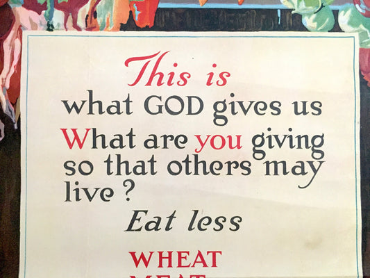 Original 1918 WWI This is What God Gives Us; Eat Less Poster by A. Hendee – US Food Administration, World War One, WW1, Doughboy Germany USA